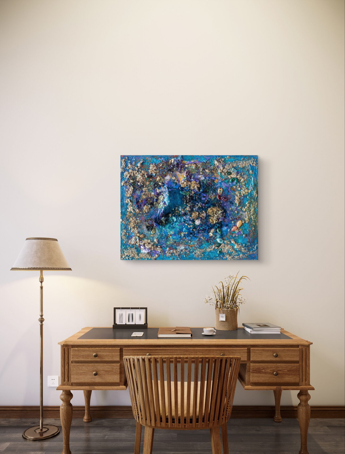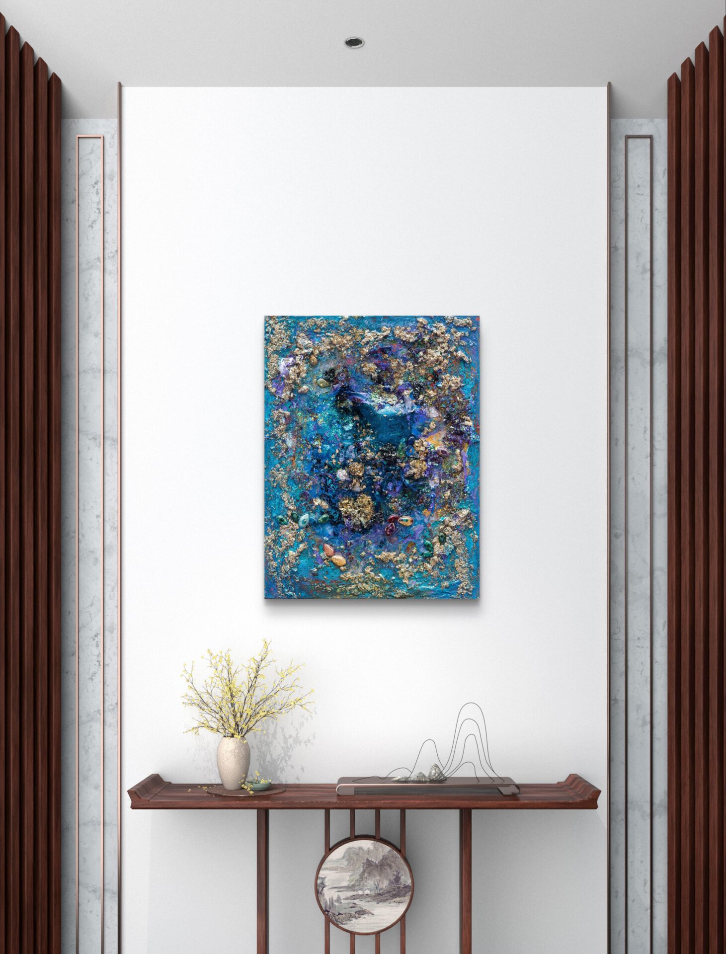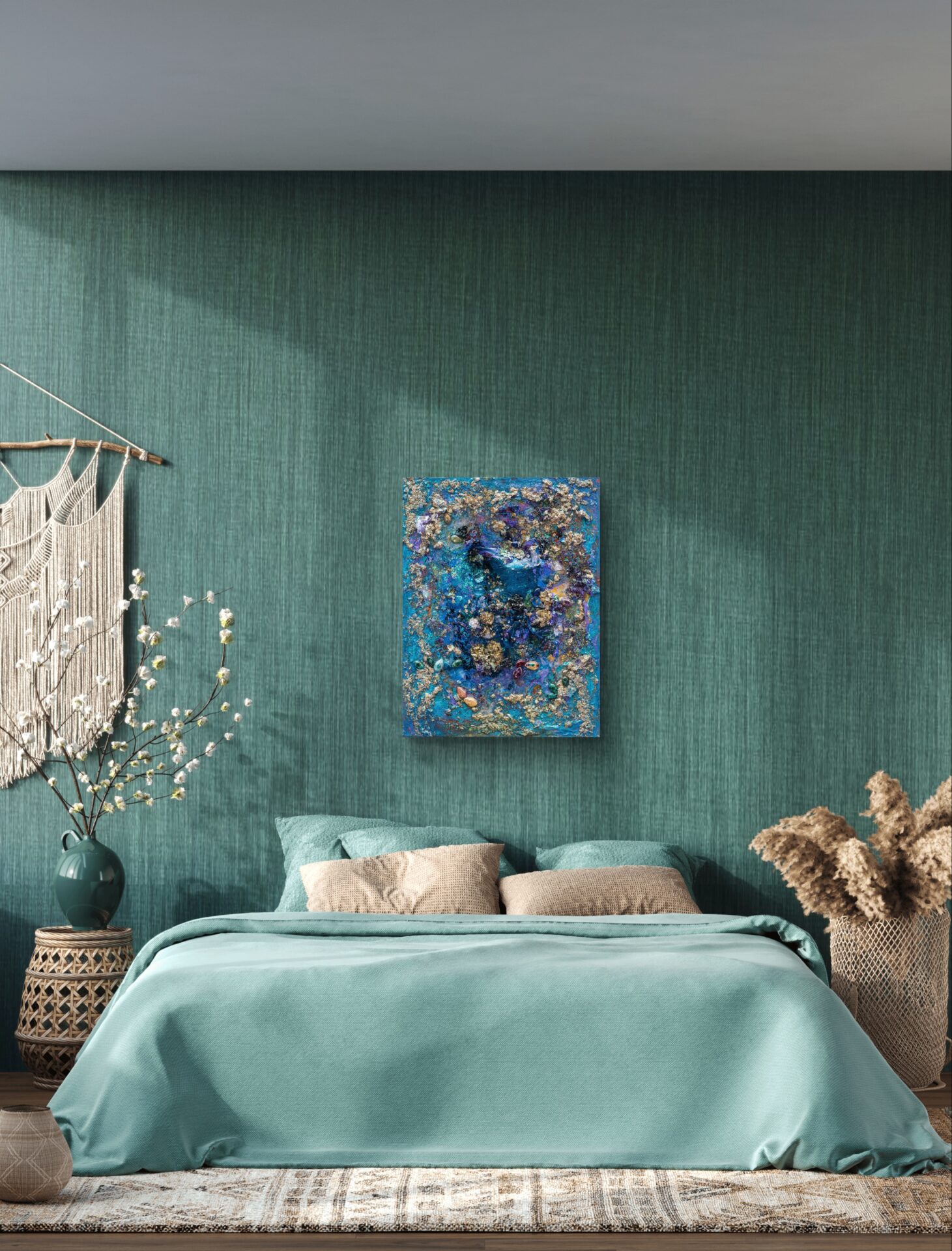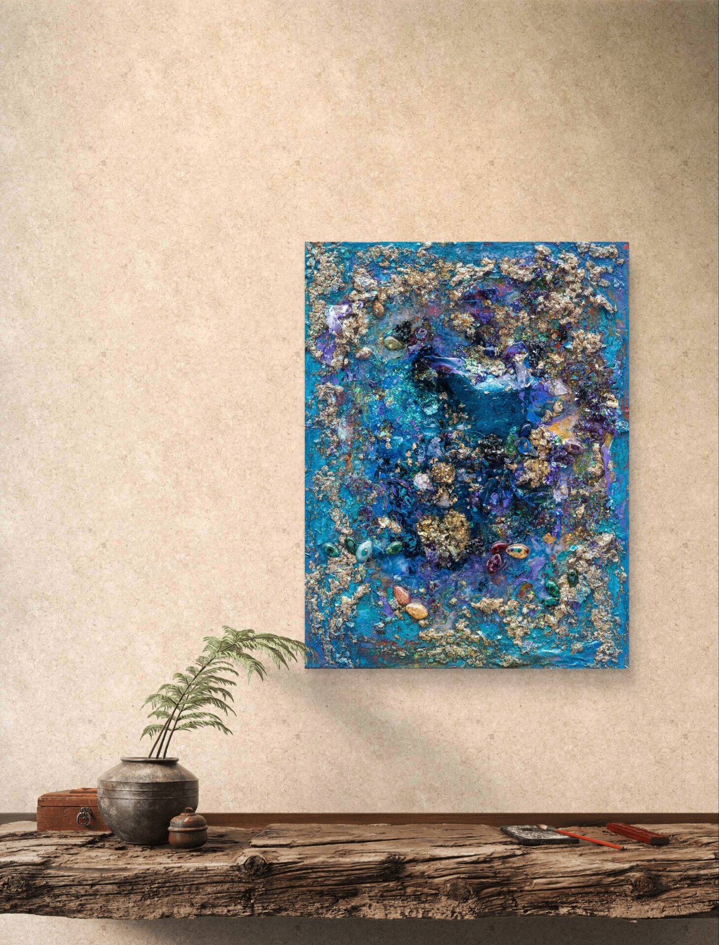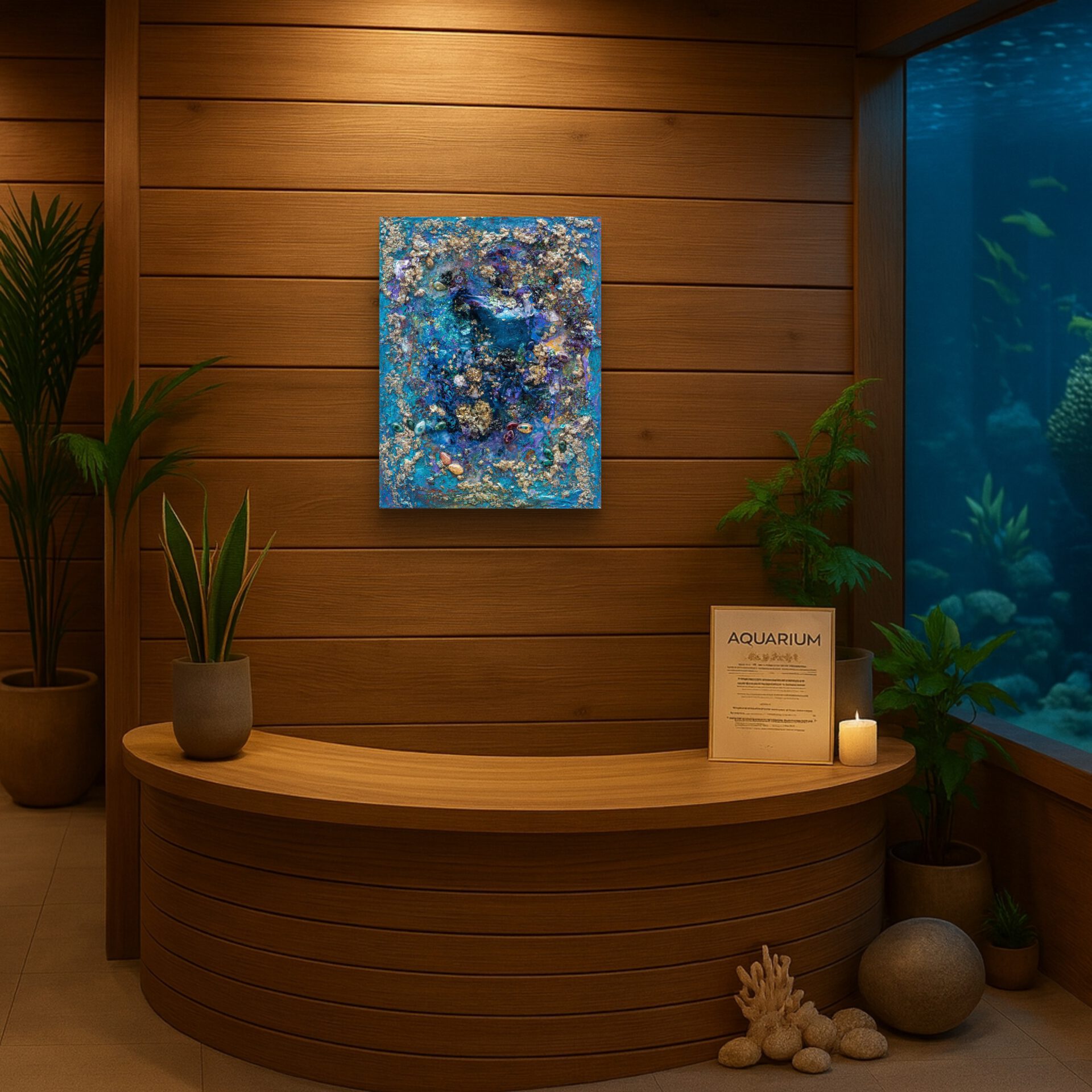Wie ein Blick in die Unterwasserwelt offenbart das Werk verborgene Schichten von Erinnerung und Heilung. Es lädt den Betrachter ein, still zu werden, um das Fließen wieder zu spüren – das rhythmische Pulsieren des Lebens, das in uns und um uns wirkt.
