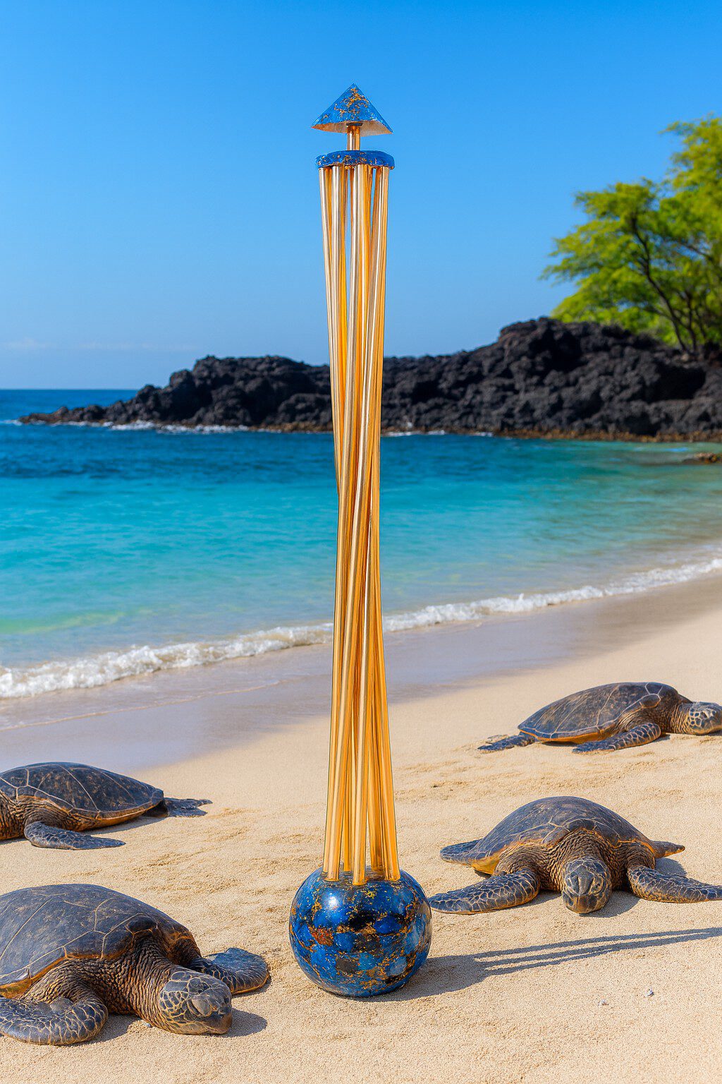 Dieses Zusammenspiel aus Blau, Gold und Weiß verleiht dem Sockel jene ozeanische Tiefe: Ruhe, Klarheit und die Weite, aus der intuitive Erkenntnis aufsteigt.
